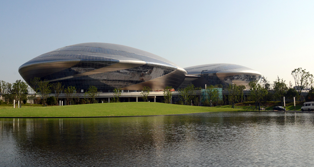 整體的設計融入了中國戲劇元素,將形與傳統文化神韻結合起來,更能展現大劇院本身的一種藝術氛圍與文化感。材質上采用金屬板材與超白玻璃結合,體現其高雅氣質。