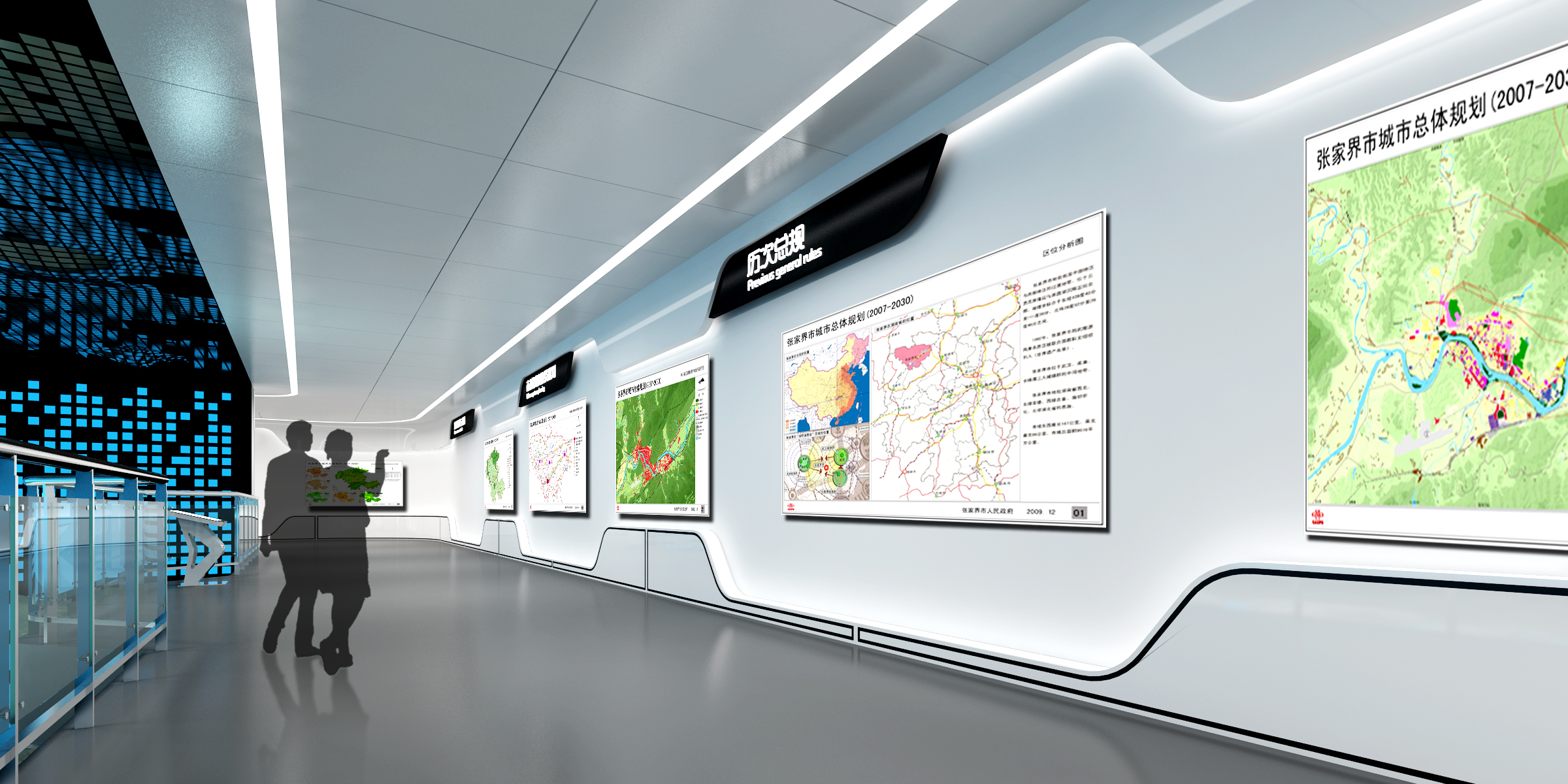 張家界城建規(guī)劃館,總建筑面積1959.6平方米,其中布展面積約1800平方米。整個展館按照歷史、現(xiàn)在、未來的時間線索,以“人間勝境,別有洞天”為主題,采用大量高科技展陳手段,將互動游戲、大型多媒體互動沙盤秀、VR漂流體驗、數(shù)字沙盤、未來影院等現(xiàn)代聲光電技術(shù)融入多項展示環(huán)節(jié),集城市展覽、規(guī)劃公示、咨詢交流、宣傳教育等多功能于一體,展示張家界悠久獨(dú)特的地域文化、奇山異水的絕美景觀和波瀾壯闊的城市建設(shè),并暢望美好未來。