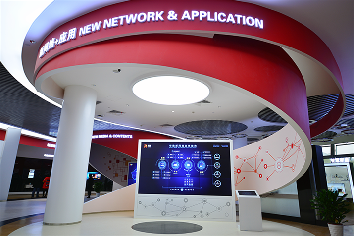 華數企業展廳暨國家廣電總局數字電視開放實驗室,位于杭州市華數白馬湖數字電視產業園H 樓一樓, 兼具展覽展示、貴賓接待、創新實驗、培訓指導、訪談發布等功能。展廳主要以多媒體展項為主,其中尤以OLED大型雕塑最為大氣磅礴,由65臺曲面柔性OLED拼接而成,類似雕塑在全球亦屈指可數。