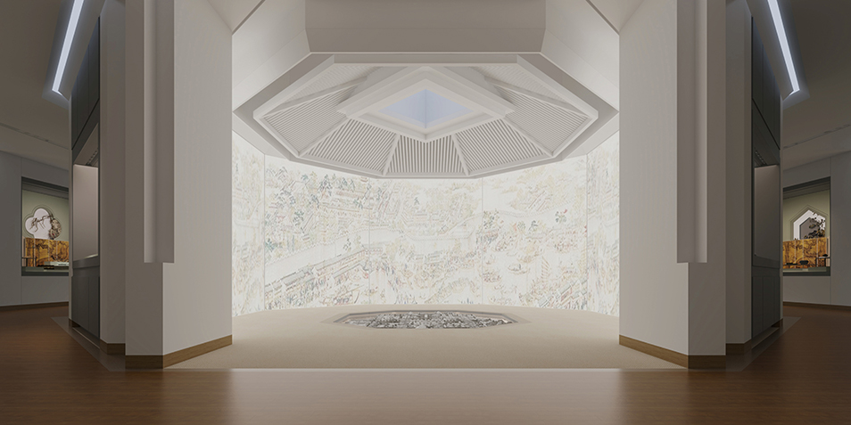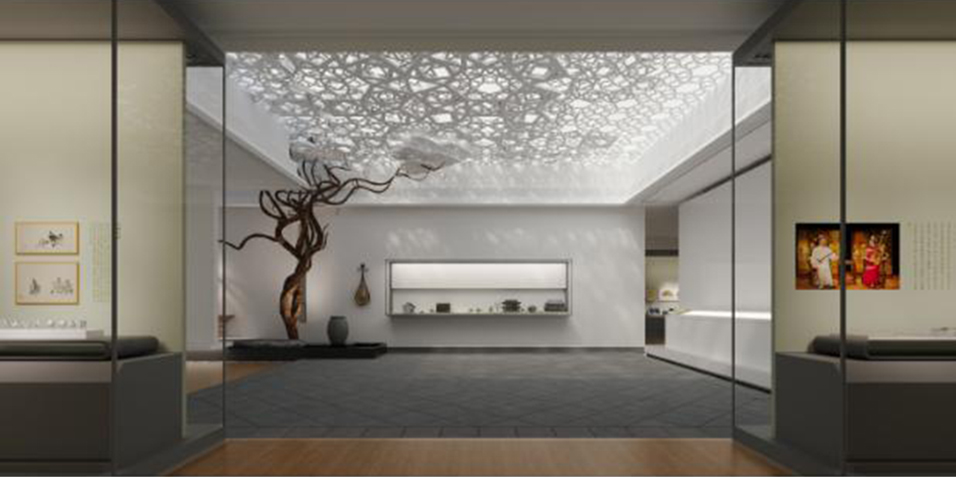 蘇州博物館西館位于蘇州高新區(qū)獅山廣場,規(guī)劃建筑面積4.83萬平方米,展廳面積1.31萬平方米,將于2021年建成開館。 蘇州博物館西館包含蘇州通史展廳、蘇作工藝展廳、書畫館、探索體驗館、國際合作館等展廳。金螳螂文化于一月初中標(biāo)通史館深化設(shè)計與布展實施項目,以模數(shù)化設(shè)計打造被光包裹的詩意空間。 展陳面積四倍于蘇州博物館本館,蘇州博物館西館集覽、讀、品、鑒、游于一體,其基調(diào)底蘊(yùn)與蘇博本館一脈相承,展陳手法又具有一定的差異性,旨在打造一個典雅、莊重、大方同時又具備國際視野的新型展館。 風(fēng)流吳地,天下蘇州。金螳螂文化團(tuán)隊融合多樣化元素,通過抽象的幾何之形、模數(shù)化之設(shè)計表達(dá)江南詩意之精神,盡述吳地歷史沿革與人文風(fēng)物,傳遞對展覽的深入思考。 有序中不失變化,方角中更顯圓潤。在蘇博西館設(shè)計中沿用了模數(shù)化設(shè)計的概念,并引入了紫藤的概念,代表著蘇博文脈的延續(xù)。 以數(shù)字多媒體、場景藝術(shù)演繹等多種方式輔助解讀展陳內(nèi)容,運(yùn)用白描、抽象、寫意的手法,展現(xiàn)蘇州的文明變遷及城市發(fā)展,動靜結(jié)合,呈現(xiàn)出鮮活的蘇州印象。