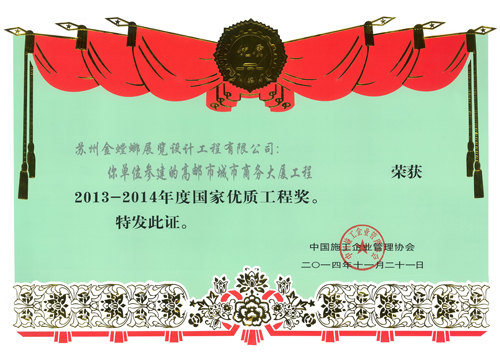 榮獲第一個建筑業最高獎 “魯班獎” 。