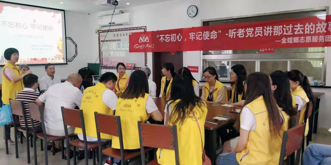 為了更好地發揚革命優良傳統,傳承紅色基因,助力姑蘇黨建,金螳螂文化攜手金螳螂公益慈善基金會,開展“不忘初心·牢記使命,聽老黨員講那過去的故事”志愿活動。