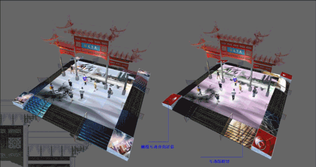 金螳螂文化公司運用藝術重構的手法與現代金屬工藝手段,展示傳統牌樓的建筑形制,同時突出時尚、現代的氣息。通過地磚互動屏,將藝術趣味性,知識性、參與性完美結合,使之成為一個真正的城市文化地標。
