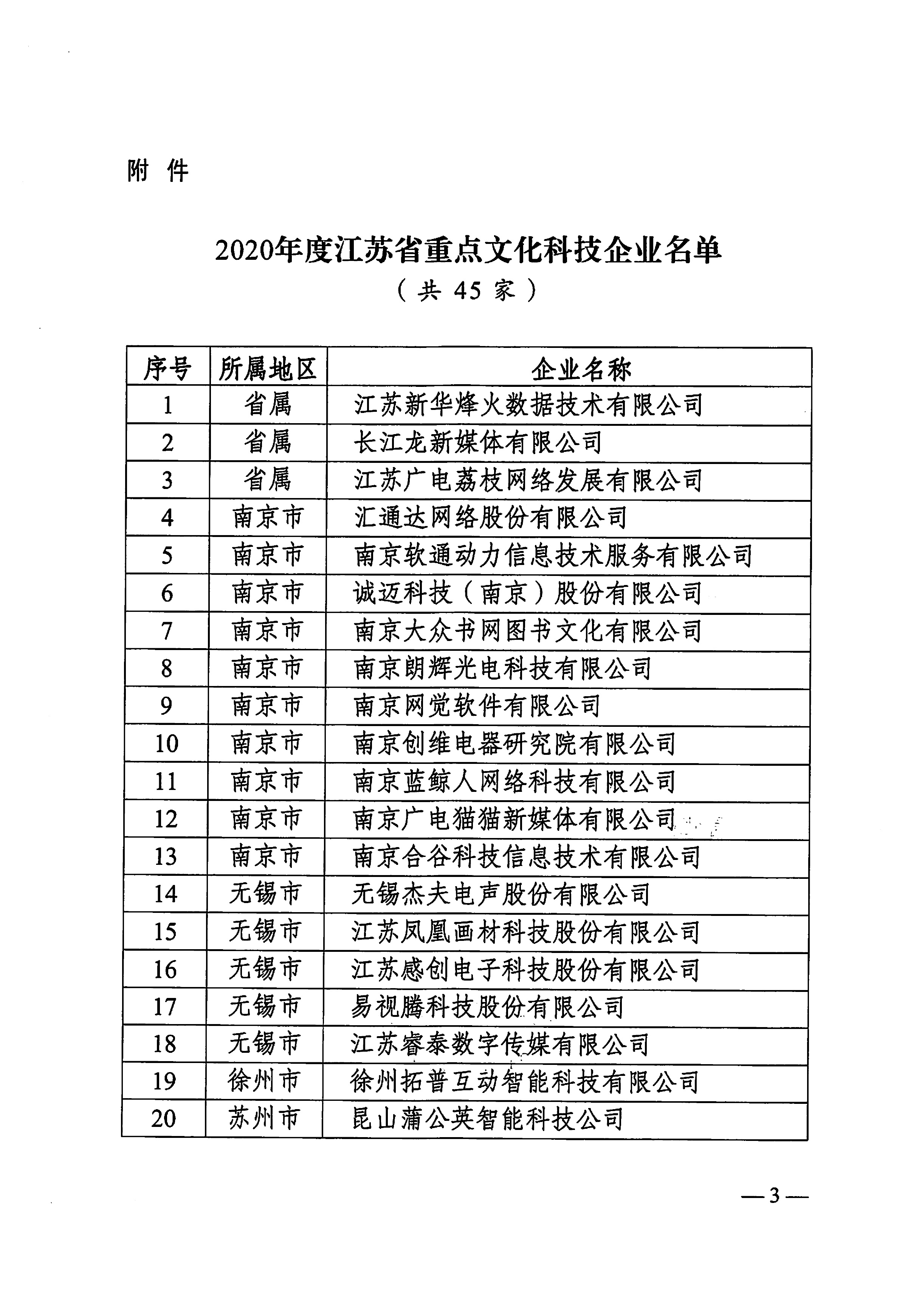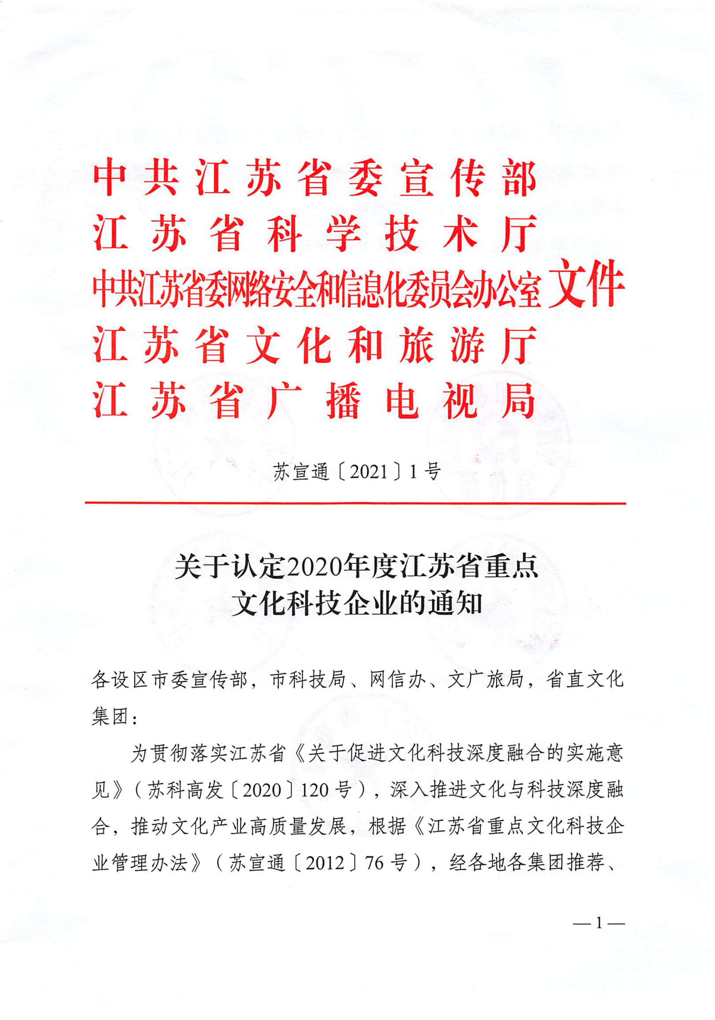 中共江蘇省委宣傳部、江蘇省科學技術廳、中共江蘇省委網絡安全和信息化委員會辦公室、江蘇省文化和旅游廳、江蘇省廣播電視局聯合發布了“關于認定2020年度江蘇省重點文化科技企業的通知”,金螳螂文化公司榜上有名 。