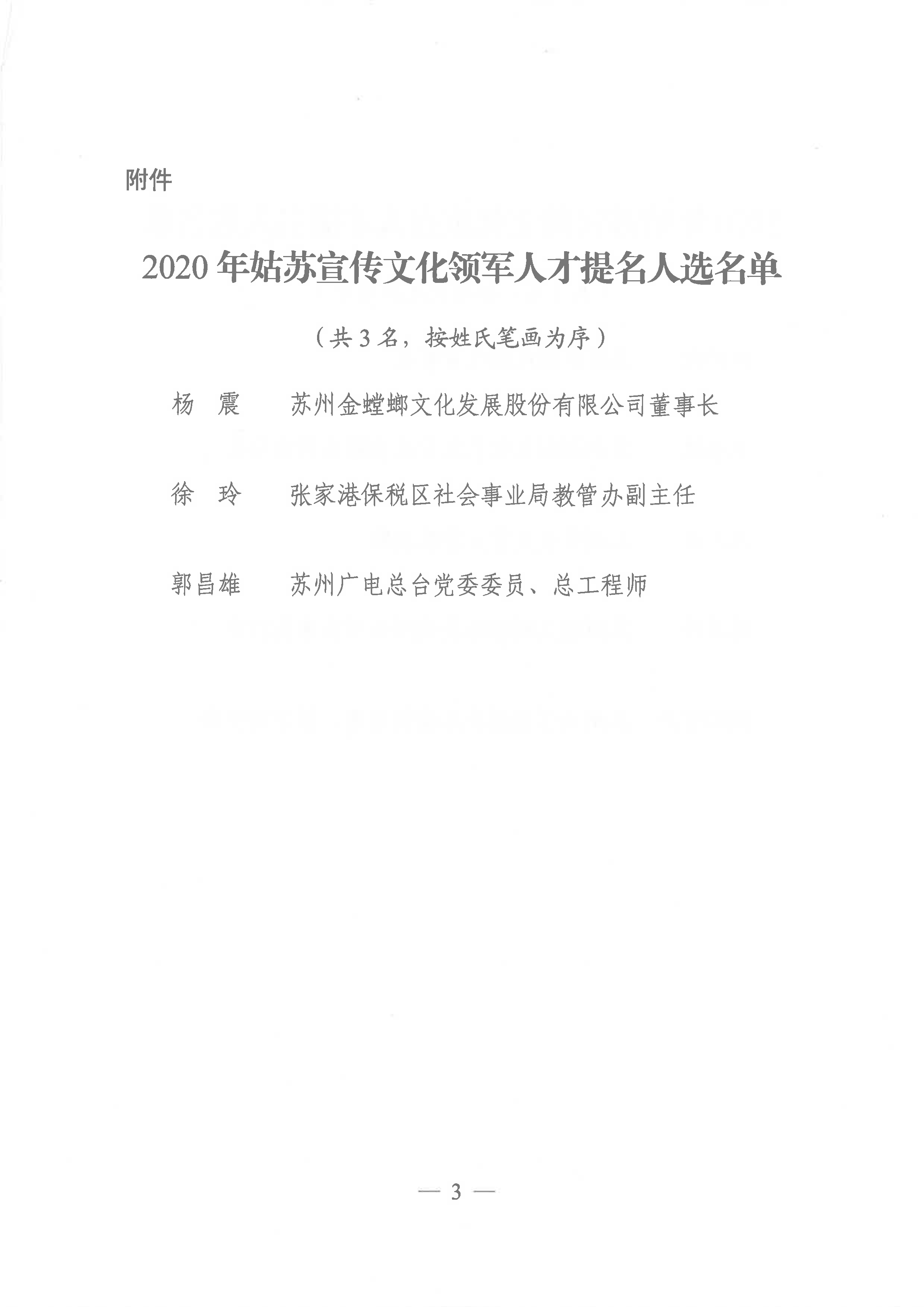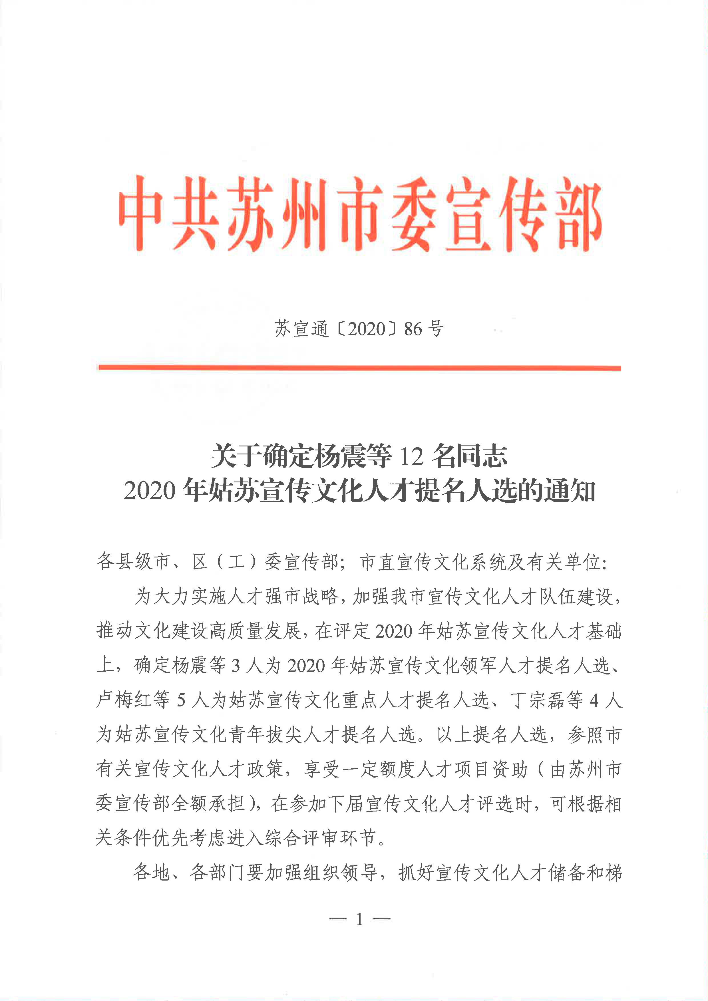 中共蘇州市委宣傳部發布了2020年姑蘇宣傳文化人才名單,確定金螳螂文化董事長楊震先生2020年姑蘇宣傳文化領軍人才提名人選。