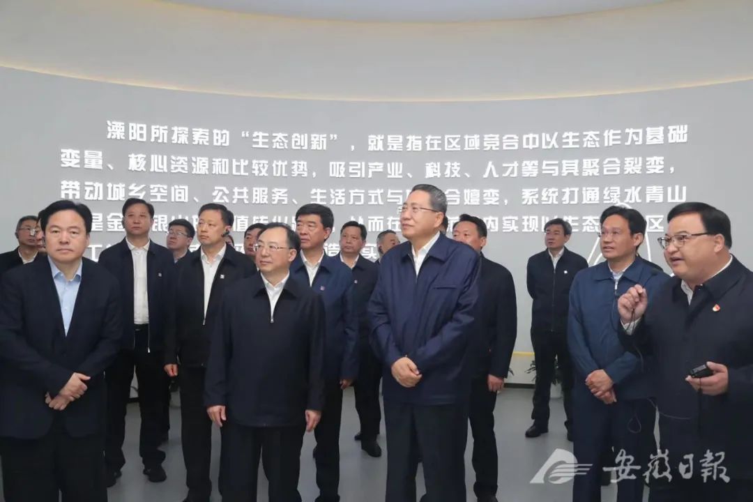 第一站是國家生態市、全國生態文明建設示范市、全國文明城市溧陽。安徽省黨政代表團冒雨來到溧陽生態創新展示館,考察當地探索生態創新的經驗做法和蘇皖合作示范區建設情況。