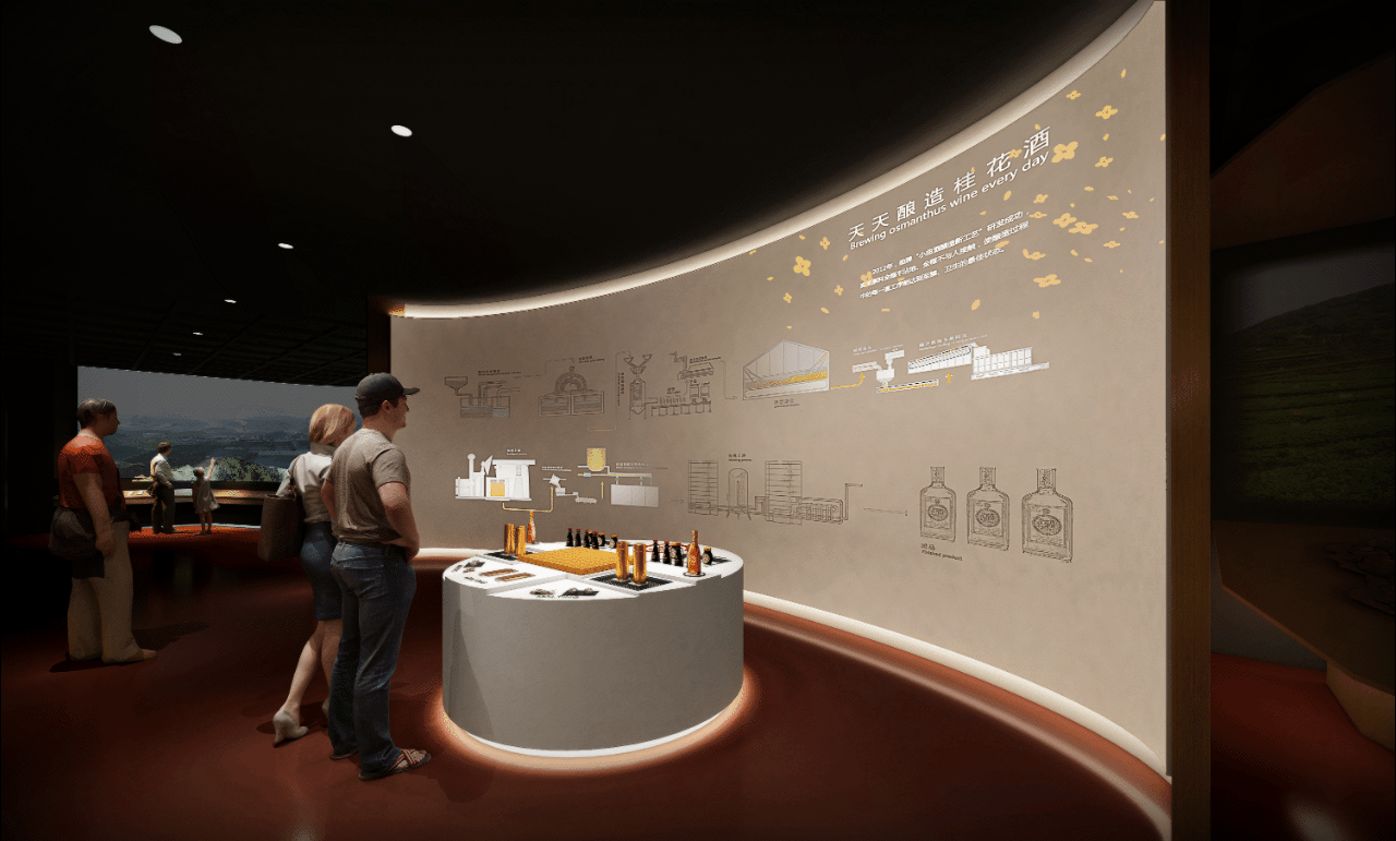 勁牌企業展覽館由“A館-勁牌品牌館”與“B館-勁牌產品體驗館”組成,金螳螂文化承接了從后期落地策劃到深化設計施工的整個企業展館的建設。