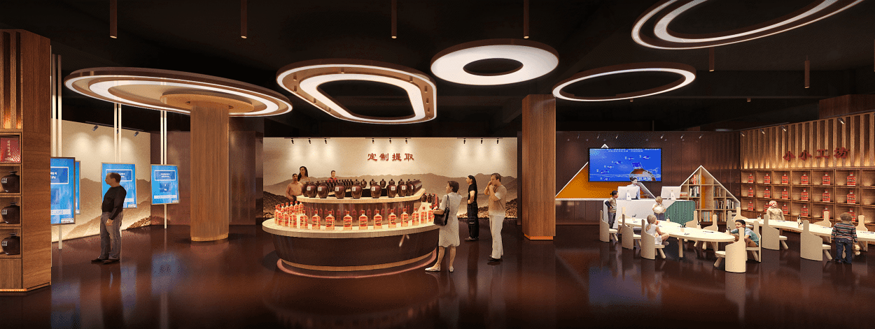 B館總面積約13000平米,是展售一體的勁牌產品體驗館。整個展館共有四層,分別為展銷定制區、品調私享區、美酒銀行封壇區和酒海遨游倉儲區等四個主體功能區,展示勁牌酒類豐富、倉儲如海,兼具展覽展示、銷售接待、酒品定制等功能。
