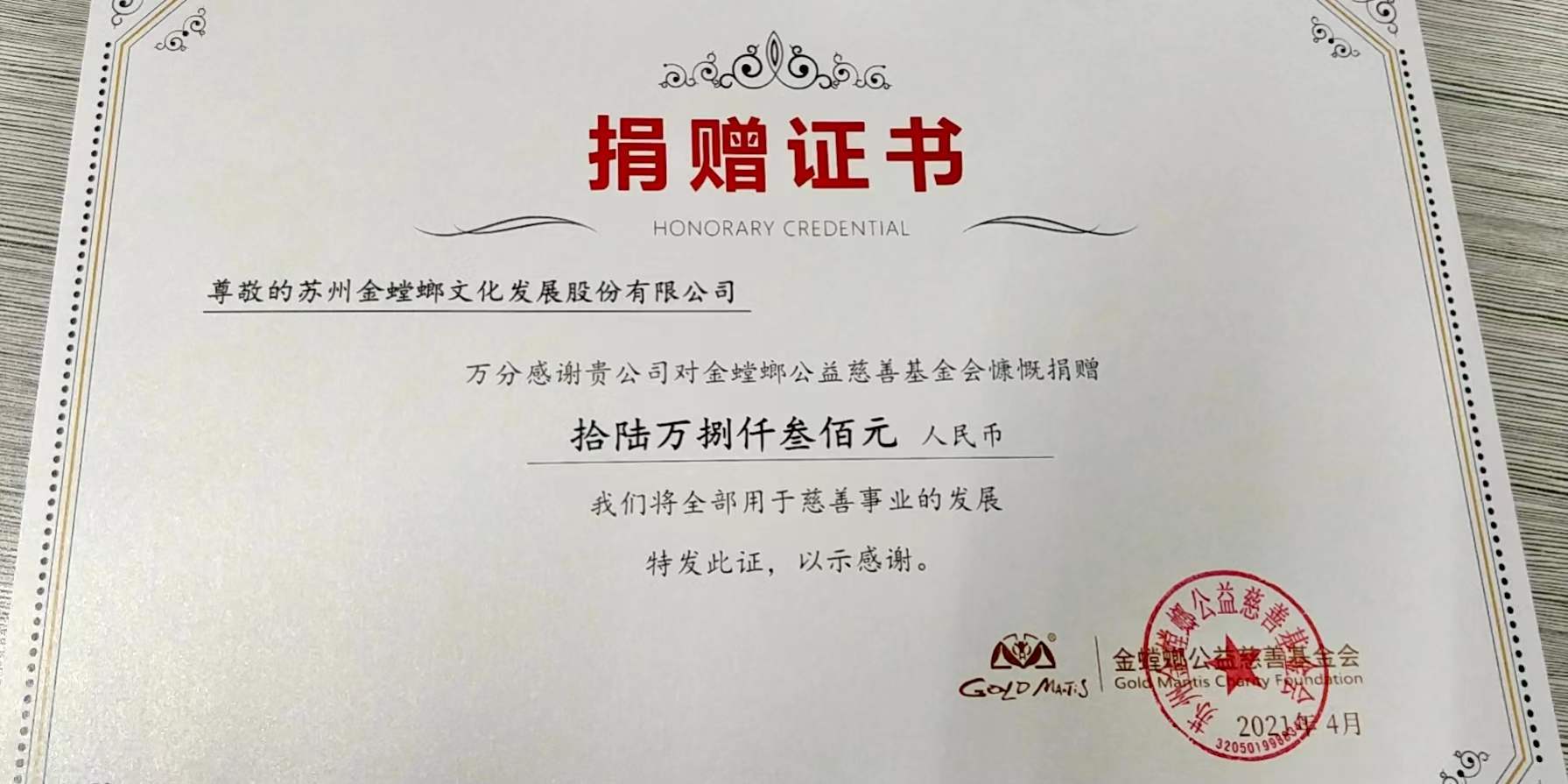 金螳螂文化在行動 傳播慈善文化,幫助困難群眾,支持公益事業,促進社會進步,共享發展成果。點滴善行匯聚江海,盡綿薄之力,擔社會責任。 愛心傳遞 Charity ??? 贈人玫瑰,手留余香 ??部分證書 01 青山綠水就是金山銀山,保護地球從我們做起。近日,蘇州金螳螂文化發展股份有限公司向蘇州市慈善基金會捐贈10萬元,用于支持蘇州市垃圾分類與環保公益項目“零碳家園公益基金”。 02 讓善意的種子生根發芽,金螳螂文化每年組織員工愛心捐款。2021年籌集善款16.83萬元,全額捐贈給金螳螂公益慈善基金會,助力慈善事業的發展。 03 金螳螂文化工會每年開展困難職工幫扶和走訪、慰問,幫助有需求的伙伴走出困境,面向更好的生活。 在金螳螂文化這個平臺,我們同頻共振,攜手成長。公司對在職員工實行就餐補貼、節日福利、生日紅包、免費體檢、走訪慰問等;對項目一線員工夏送清涼、冬送溫暖;同時開展豐富多彩的團建拓展、考察交流活動,以健全的員工福利制度,力求打造幸福企業。 04 多年來,金螳螂文化重視校企合作以及創新研發,與上海大學、上海工程技術大學、蘇州大學、西交利物浦大學、南京藝術學院等院校建立了深度的產業研合作。 國際博物館協會國際博物館研究與交流中心(ICOM-IMREC)揭牌,金螳螂文化作為“上海大學教育發展基金會·國際文博教育基金”捐贈企業之一,積極支持文博產業發展。 1:“上海大學教育發展基金會·國際文博教育基金”捐贈 2:“室內設計6+”聯合畢業設計(實驗組) 3:與西交利物浦大學達成戰略合作 4:“姑蘇八點半 夜享悅高新”沉浸式產業研討會 5:與上海工程技術大學中韓多媒體設計學院合作簽約 6:與南京藝術學院進行校企合作洽談 凝聚慈善力量,履行企業社會責任。金螳螂文化將持續投身公益事業,以責任之心助力事業發展,真誠回饋社會,身體力行為社會創造更大的價值。