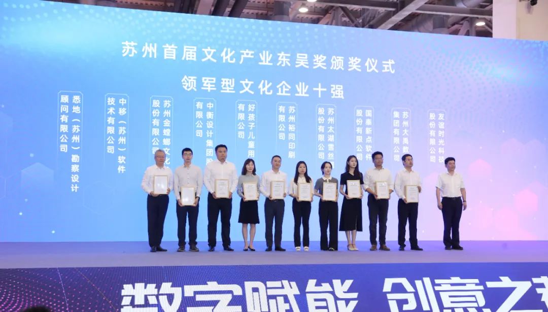 △ 第十二屆蘇州文博會,金螳螂文化獲得蘇州首屆文化產(chǎn)業(yè)“東吳獎”領(lǐng)軍型文化企業(yè)十強