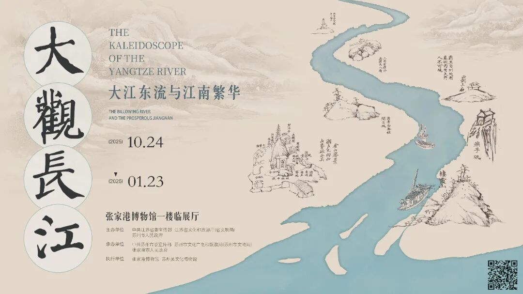 10月24日,由中共江蘇省委宣傳部、江蘇省文化和旅游廳、蘇州市人民政府主辦,中共蘇州市委宣傳部、蘇州市文化廣電和旅游局、張家港市人民政府承辦,張家港博物館、蘇州吳文化博物館共同執(zhí)行,金螳螂文化設(shè)計(jì)實(shí)施的“大觀長江——大江東流與江南繁華”主題展覽在張家港博物館開幕。 本次特展是“考古里的長江文明”系列展覽,也是2025長江文化節(jié)的系列活動(dòng)之一。 (視頻號(hào)) “考古里的長江文明”系列展覽之“大觀長江——大江東流與江南繁華”主題展覽匯集來自中國國家圖書館、重慶中國三峽博物館、安徽博物院、南京博物院等15家文博機(jī)構(gòu)的159件(套)珍貴文物,包含吳王夫差劍、“偏將軍”金印、大報(bào)恩寺獅紋琉璃磚、王子于戈、刻紋骨版等多件重磅文物。 該展覽以《長江大觀全圖》、長江流域線路圖和紙質(zhì)裝置三位一體的展示方式,設(shè)置“起·溯源”“承·煙火”“轉(zhuǎn)·激蕩”“合·共生”四大篇章。 展覽的入口處,一幅清代《長江大觀全圖》徐徐展開。畫卷中,揚(yáng)州、金陵、安慶、九江、武昌等沿江重鎮(zhèn)星羅棋布,金山、方山、棲霞山等名勝古跡依次鋪展,一條波瀾壯闊的長江在紙上奔騰,串聯(lián)起山川形勝與人文氣象。 以這幅輿圖為線索,展覽將歷史文物、考古成果與當(dāng)代藝術(shù)相融合,構(gòu)筑起一條可感、可游、可思的“文明探源”之路。 與以往靜態(tài)陳列不同,這場展覽更像一場跨越千年的文明之旅。多媒體繪畫裝置與沉浸式空間設(shè)計(jì),讓觀眾在光影中“穿越”洪流,觸摸歷史的溫度。 展覽同步推出“長江大觀游”互動(dòng)游戲和“江水長,共潮生”青少年“趣玩”博物館體驗(yàn)活動(dòng),讓青少年在“尋跡長江”的過程中,感受一條大江如何滋養(yǎng)文化、托舉民族精神。 特 展 信 息 展覽名稱:大觀長江——大江東流與江南繁華 展覽時(shí)間:2025.10.24-2026.1.23 展覽地點(diǎn):張家港博物館一樓臨展廳